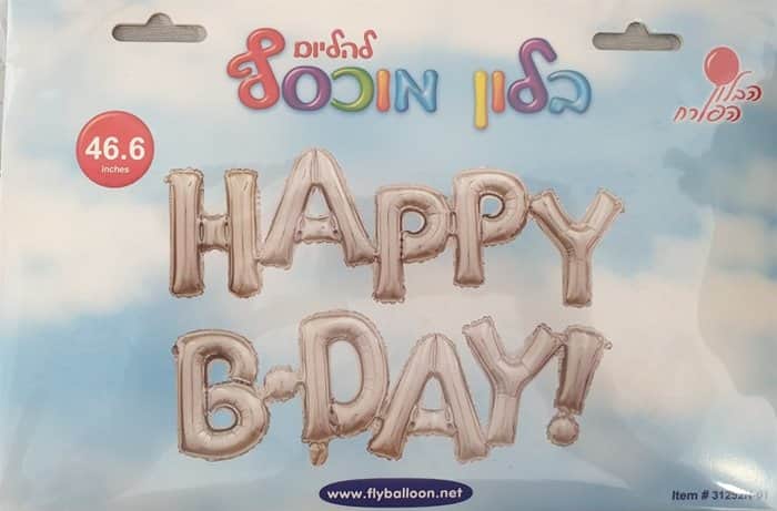 סט בלונים לניפוח עצמי מחובר צבע כסף HAPPY B-DAY 46.6"