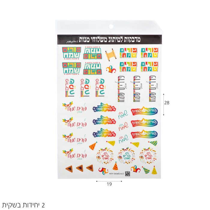 מדבקות למשלוחי מנות פורים שמח צבעוני, 2 דפים בחבילה- פורים