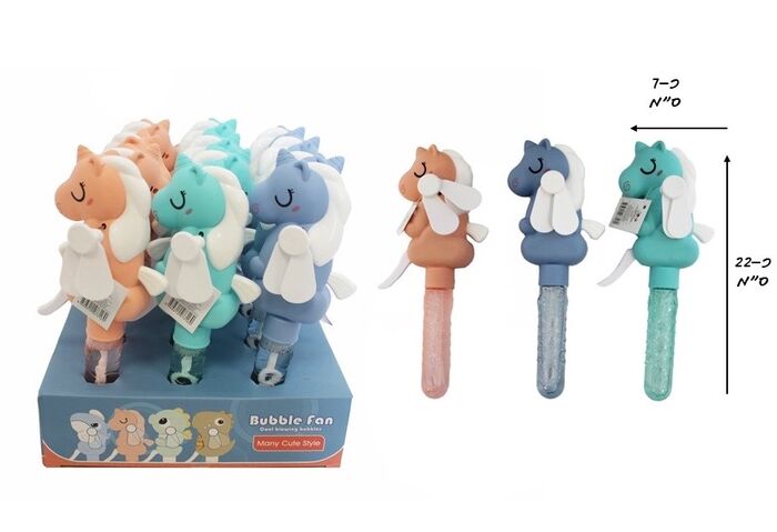 מאוורר ידני חד קרן עם בועות סבון- צבע אקראי