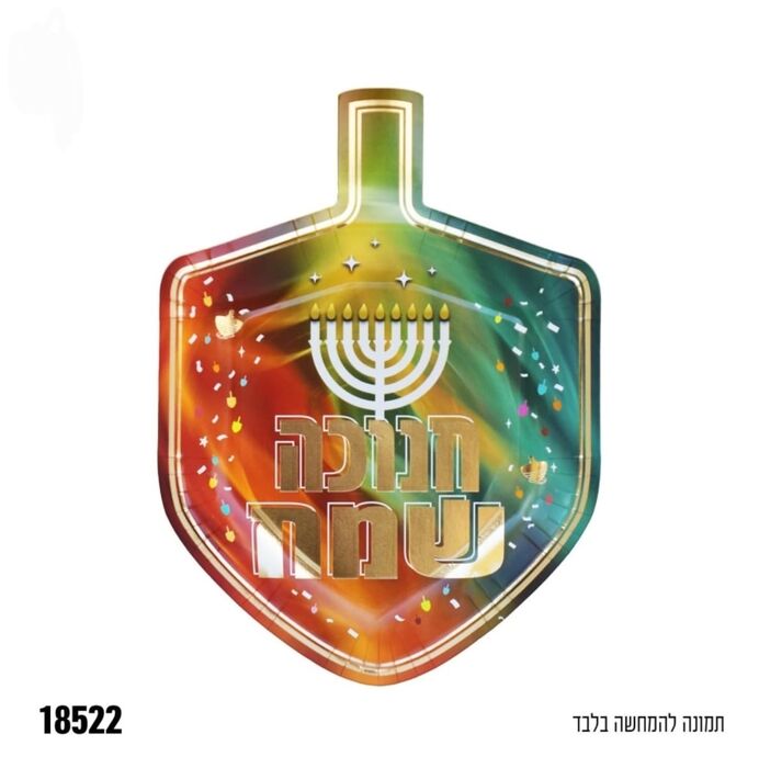 10 צלחות נייר בצורת סביבון חנוכה שמח זהב צבעוני 21*23 ס״מ
