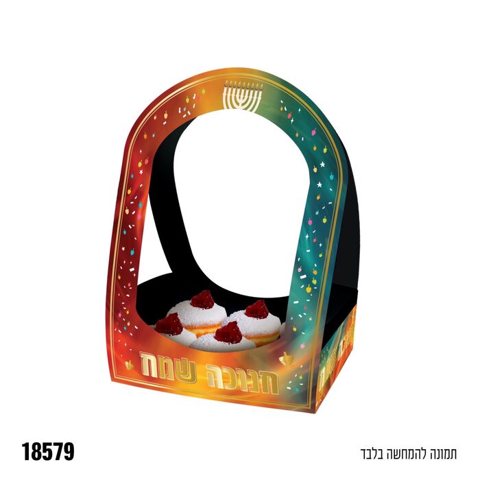 מארז קרטון לסופגניות צבעוני חנוכה שמח 18*27*24 ס"מ