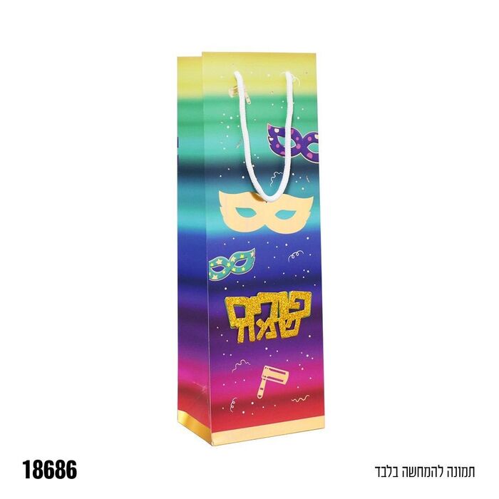 שקית נייר פורים שמח צבעוני לבקבוק יין 36*12*8.5 ס"מ