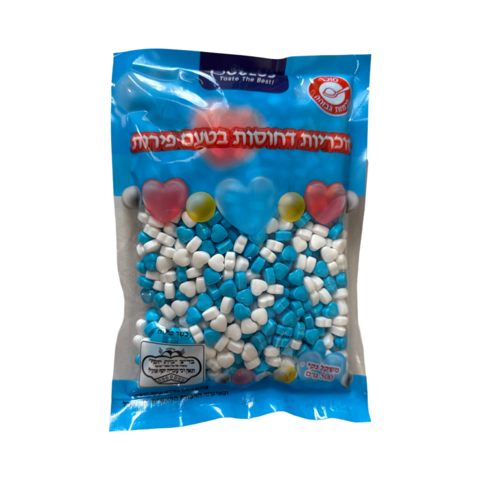 סוכריות דחוסות בטעם פירות לבבות כחול לבן