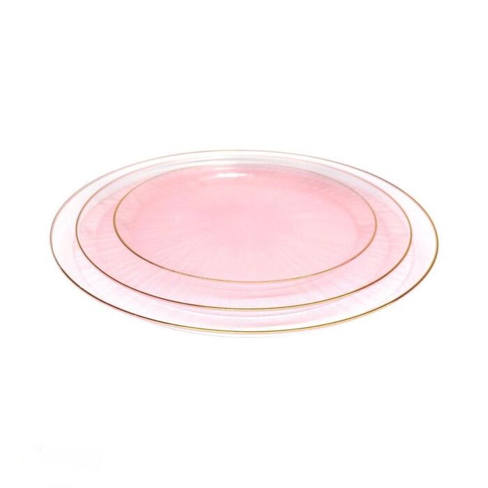 צלחת פלסטיק ורוד עיטור זהב 10" (התחתונה) 10 יח