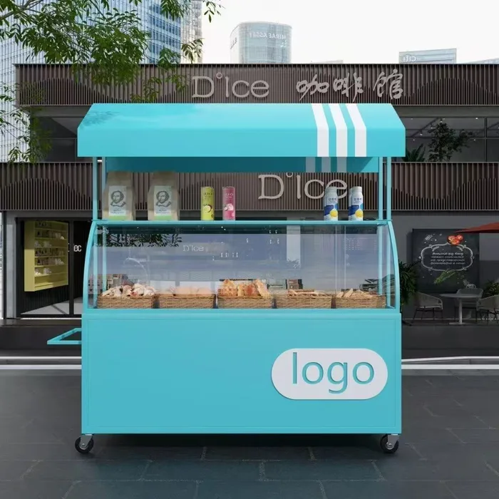 דוכן יריד מפואר דגם אושרי עם ויטרינה זכוכית 1.80 טורכיז על גלגלים