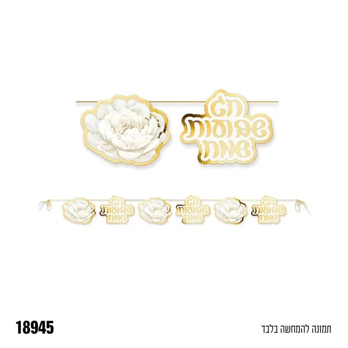 שרשרת אותיות שבועות שמח לקישוט פרחים זהב לבן
