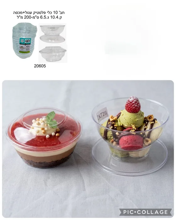 כלי פלסטיק עגול + מכסה 10 יח