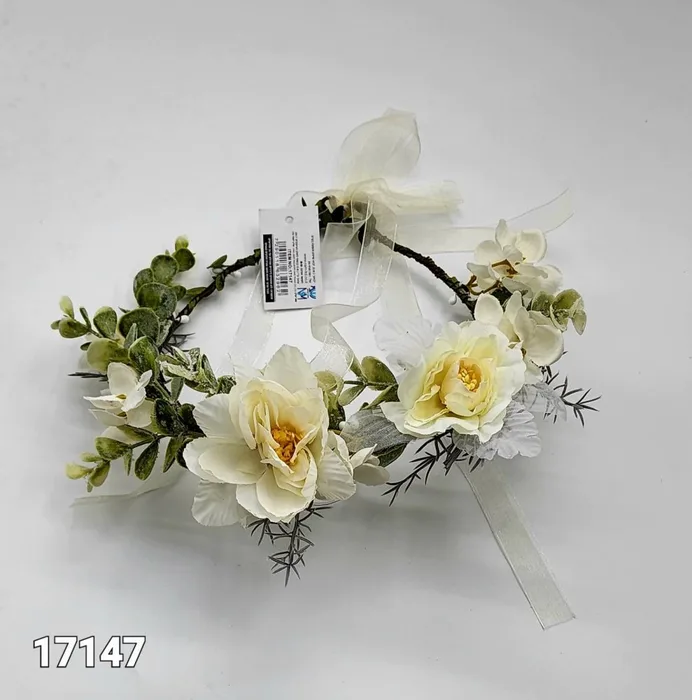 זר פרחים לראש וינטג' לבן נגיעות שמנת